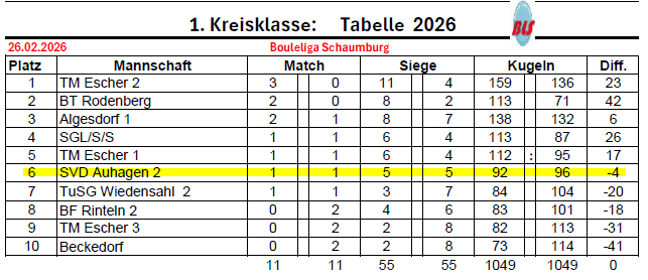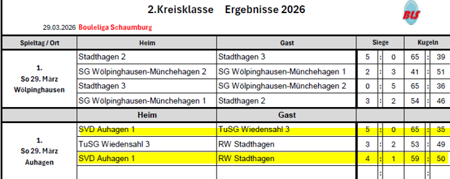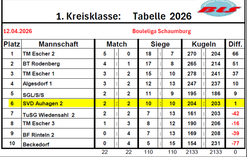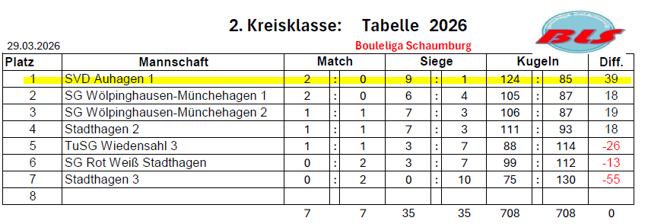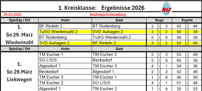 Boule: BLS Schaumburg Spieltag 1. 29.03.2026
